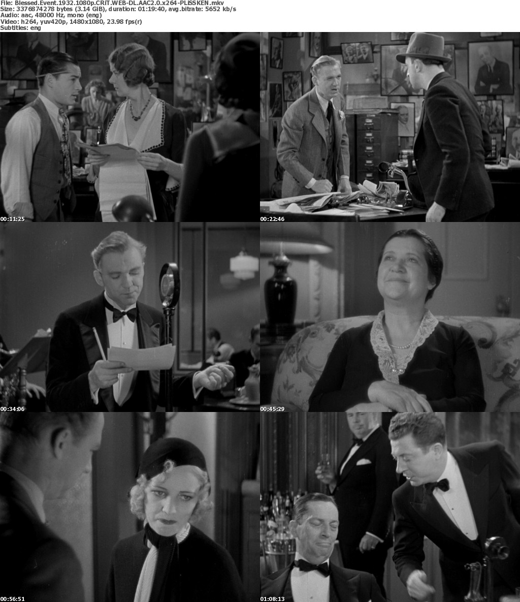 Release Name: Blessed.Event.1932.1080p.CRiT.WEB-DL.AAC2.0.x264-PLiSSKEN
