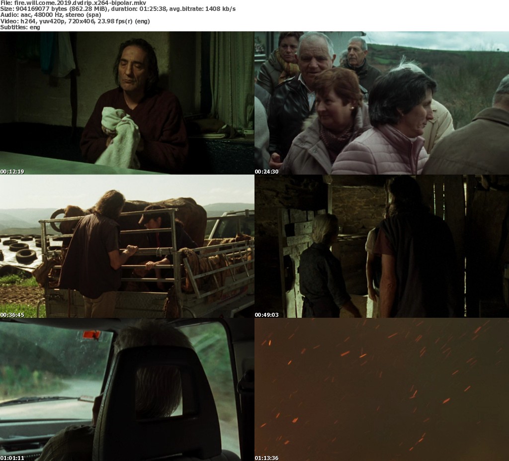 Plot: O que Arde ("Lo que Arde" in Spanish, "What It Burns" in English) is a rural drama that follows Amador, a forty-something arsonist who is free from jail after to accomplish two-thirds of his imprisonment to burn an entire mount. Not having friends, money or other resources, Amador returns his natal home in an undetermined so-small mountain town located in the province of Lugo (Galicia; northwest to Spain), living with his aging mother Benedicta. Quiet, calm and man of few words, Amador bears silently the mock of the some neighbors whose don't forgot his misdemeanor by the fire he caused, while tries to redirect his life caring the livestock of the farm and interesting about Elena, town's veterinarian. At the same time, a worried Benedicta talks Inazio, who is restoring ancient ruined houses to turn them in rural resorts for tourists, looking for a job for Amador, in the hope that her beloved son can at least to have a normal life. But the peaceful life of the town dominated by the bad weather of rain and fog ends abruptly when a new fire lights in the mount close to it, threatening not only houses of the town, but neighbors.
