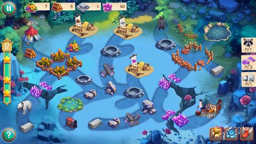 Gnomes Garden is a classic time-management game with worker assignment: on each level you quickly gather resources (food/wood/stone/crystals), build and upgrade structures (farm, sawmill, quarry, mine, workers’ house), clear obstacles, and manage to complete the objectives for ‘3 stars’ before the timer runs out, using temporary boosts (speed-up, time stop, construction speed-up).