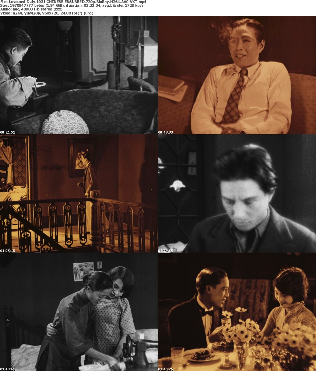 Release Name: Love.And.Duty.1931.CHINESE.ENSUBBED.720p.BluRay.H264.AAC-VXT