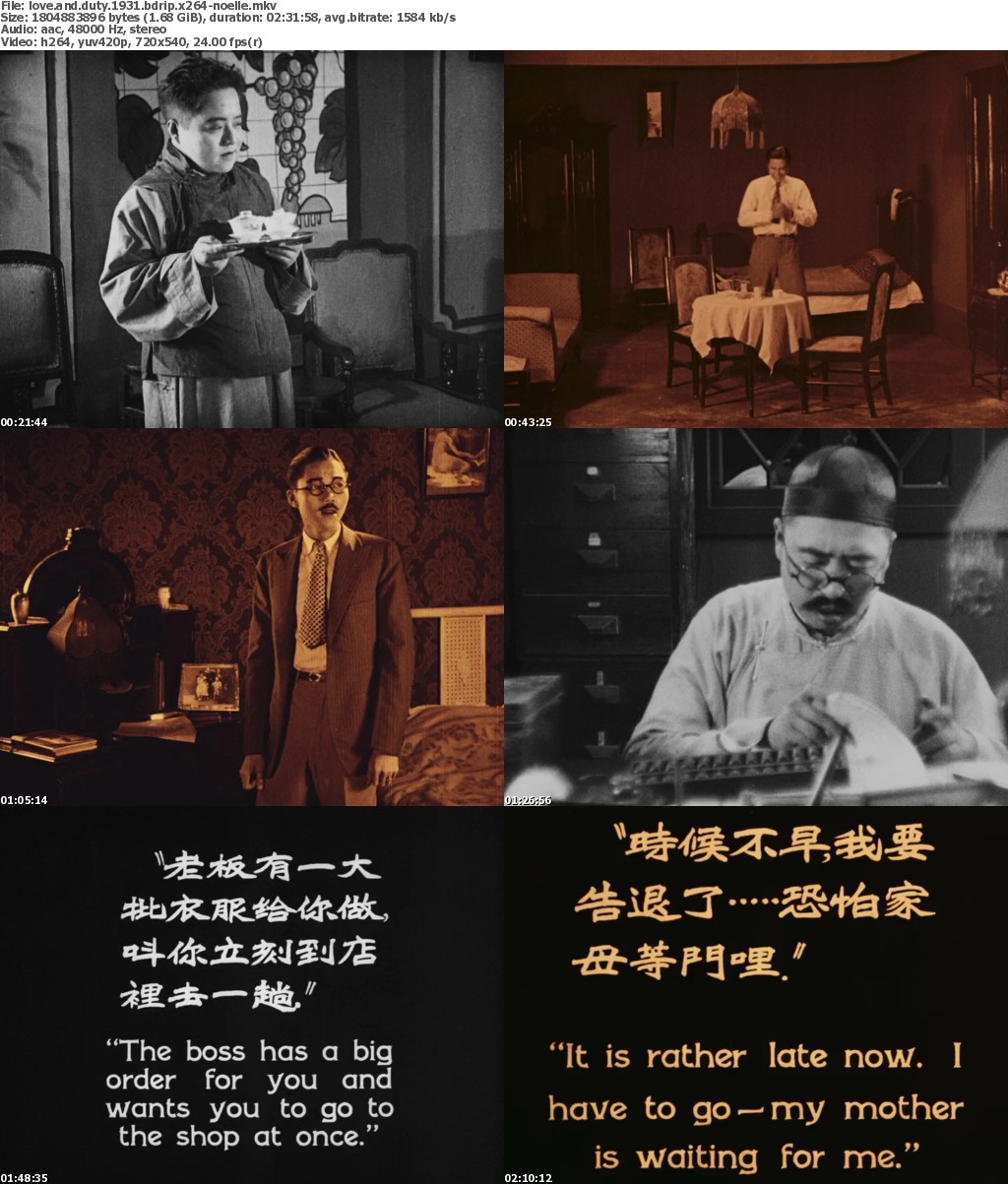 Release Name: Love.And.Duty.1931.CHINESE.ENSUBBED.1080p.BluRay.H264.AAC-VXT