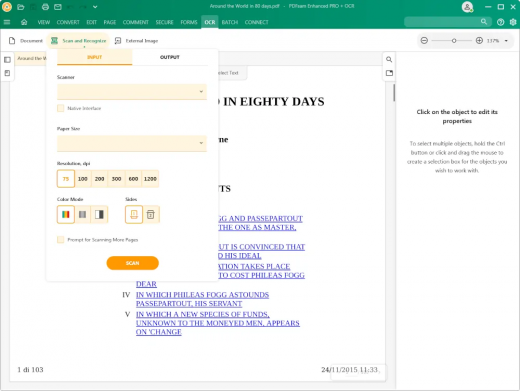 Recognize text within images and scanned documents transforming them into editable PDF files. Batch recognize the text within multiple files.