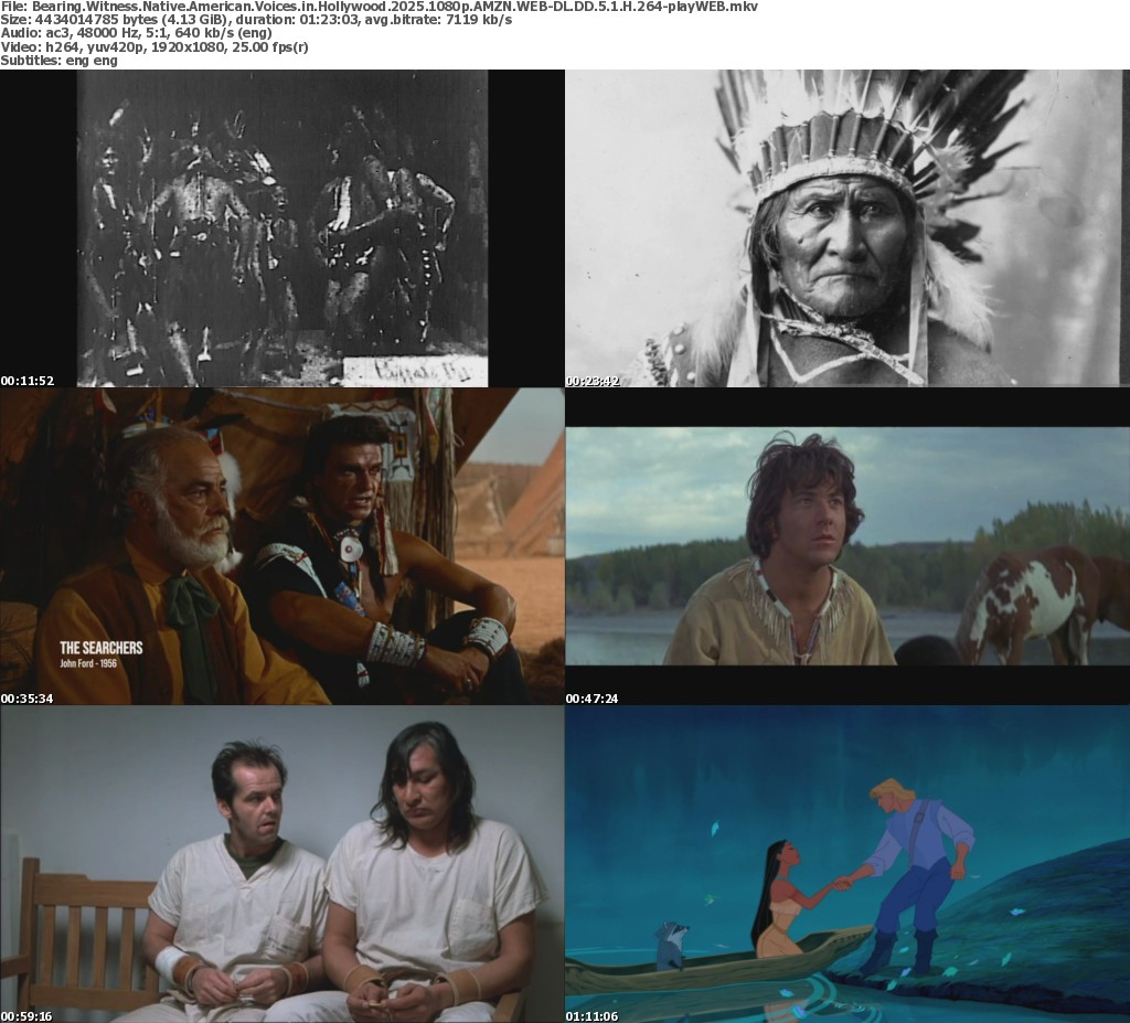 Release Name: Bearing.Witness.Native.American.Voices.In.Hollywood.2025.1080p.AMZN.WEB-DL.DD.5.1.H.264-playWEB