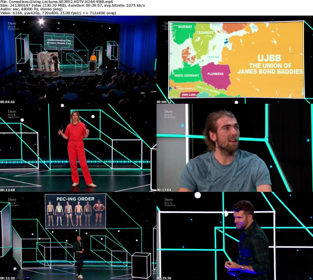 Host Sara Pascoe is joined by comedians Toussaint Douglass, Elf Lyons and Frankie Boyle, who compete to deliver the best lecture. Toussaint’s lecture is ‘How To Find The Right Partner’, Elf’s is ‘Introduction to Economics’ and Frankie’s is ‘Introduction To Power and Politics In Today’s World’.