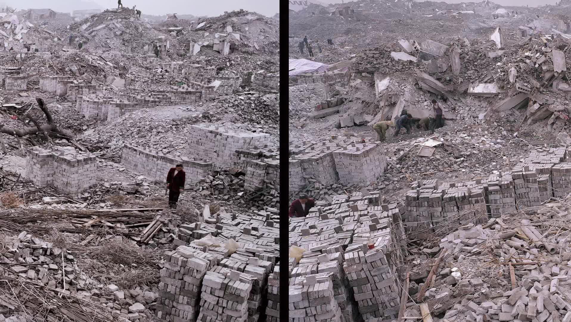 Plot: Jennifer Baichwal’s cameras follow Edward Burtynsky (1955- ) as he visits what he calls manufactured landscapes: slag heaps, e-waste dumps, huge factories in the Fujian and Zhejiang provinces of China, and a place in Bangladesh where ships are taken apart for recycling. In China, workers gather outside the factory, exhorted by their team leader to produce more and make fewer errors. A woman assembles a circuit breaker, and women and children are seen picking through debris or playing in it. Burtynsky concludes with a visit to Shanghai, the world’s fastest growing city, where wealth and poverty, high-rises and old neighborhoods are side by side.