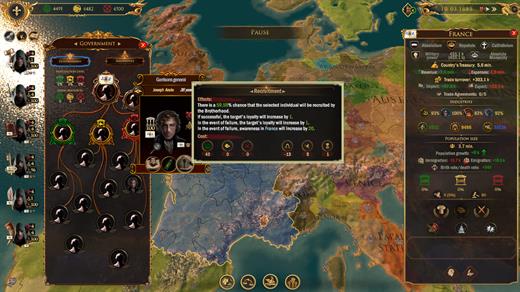 You can manipulate one country or several at the same time using different combinations. You will be able to change the ruling power of the countries, their ideology, the well-being of estates, push countries to start wars or stop them.