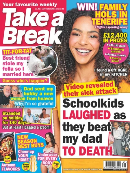 Take a Break magazine is Britain's best-selling women's magazine that's all about you and your life. Every issue is packed full of compelling, exciting and outrageous true-life stories, the latest health advice and stories, fashion and beauty tips, cookery and recipes and exciting travel features.
