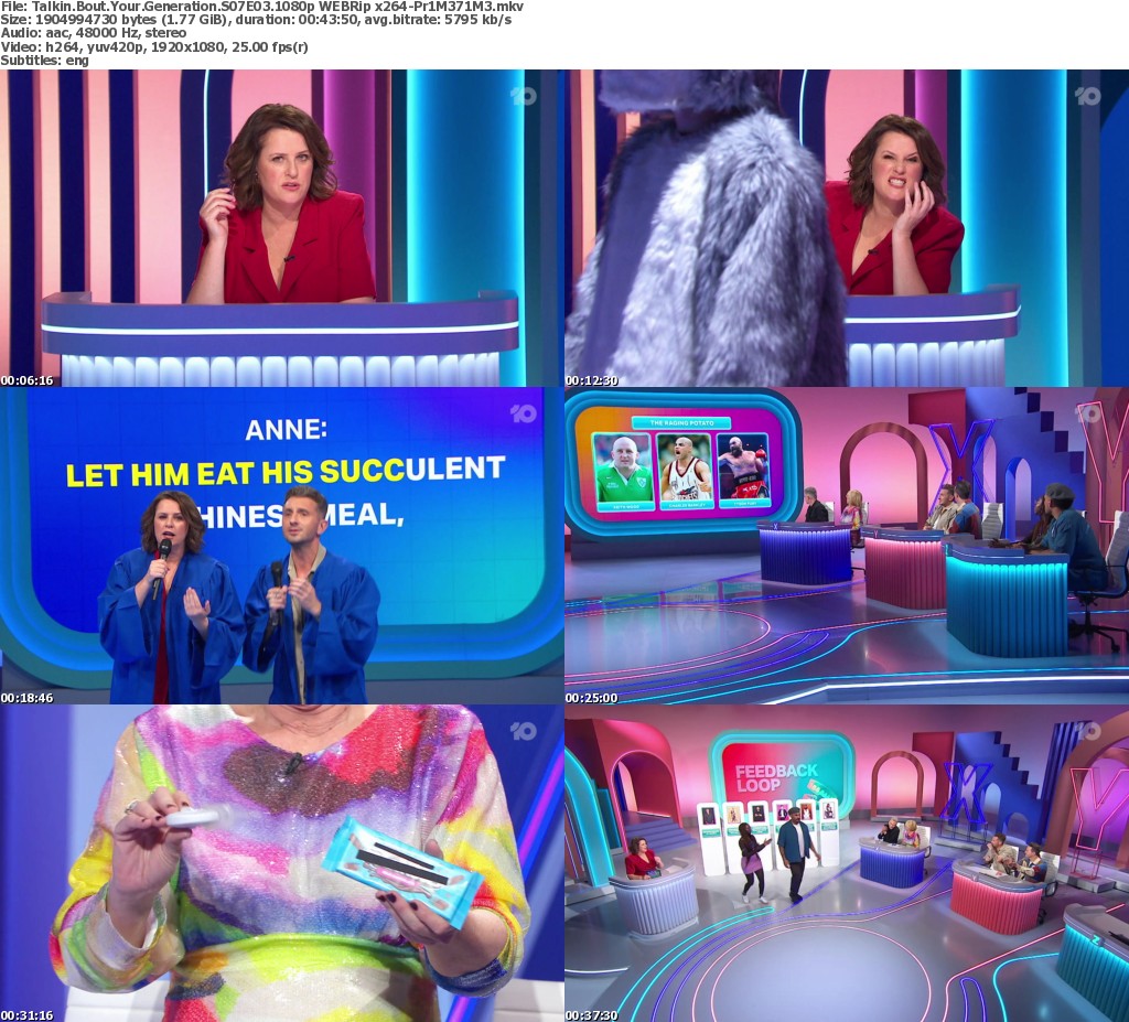 Host Anne Edmonds pits 3 generations against each other. Gen X: Dave Hughes and Matt Lucas, Gen Y: Tommy Little and Abbie Chatfield, Gen Z: Anisa Nandaula and Blake Pavey. Who’s best this week?