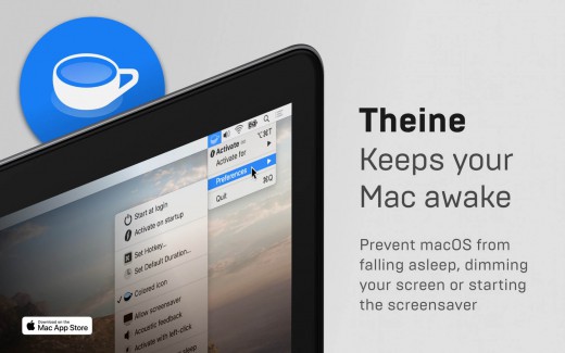 Prevent your Mac from falling asleep, dimming your screen or starting the screensaver. Theine keeps macOS awake just like caffeine does with you.