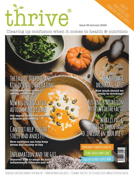 THRIVE is a quarterly, natural health, food & lifestyle magazine. A refreshing publication focused on eating for maximum health and energy. Our magazine is packed full of practical nutritional information, user tips and easy to follow professional advice, along with product reviews. It also includes need-to-know master classes on the very latest home remedies and treatments. Each issue has articles written by key people within the nutrition and health world and offers valuable wellbeing advice.