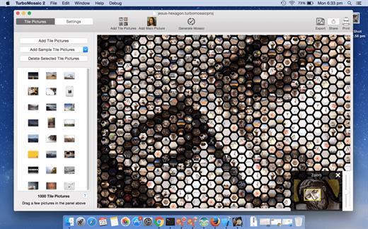 - Export mosaic as JPEG, PNG, or TIFF to send it to a print shop or to print it from the local printer