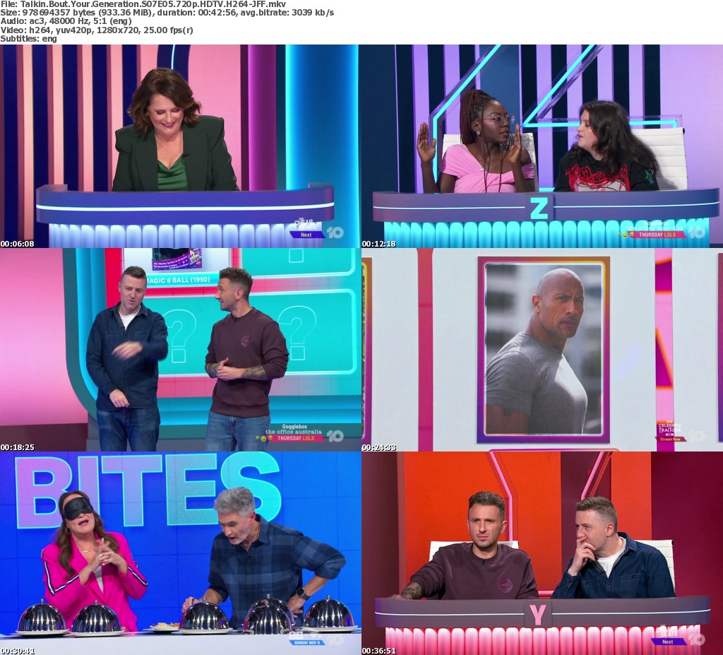 Host Anne Edmonds pits 3 generations against each other. Gen X: Dave Hughes and Kate Langbroek, Gen Y: Tommy Little and Lloyd Langford, Gen Z: Anisa Nandaula and Sez. Who’s best this week?