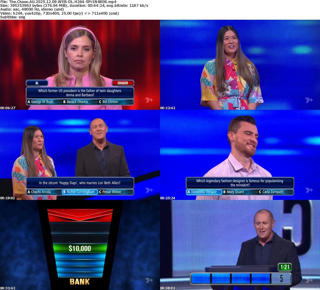Feel free to post your Old The Chase AU 2025.12.09 WEB-DL H264-5Pr1N680K torrent, subtitles, samples, free download, quality, NFO, direct link, free link, uploaded.to, rapidgator, turbobit, openload, mega.co.nz, filefactory, crack, serial, keygen, requirements or whatever-related comments here. Don't be rude (permban), use only English, don't go offtopic and read FAQ before asking a question. Owners of this website aren't responsible for content of comments.