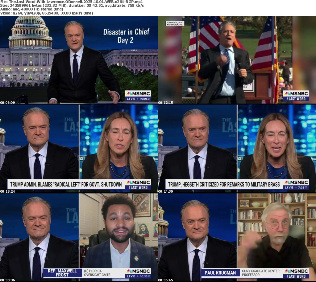 Feel free to post your Old The Last Word With Lawrence ODonnell 2025.10.01 720p WEB x264-NGP torrent, subtitles, samples, free download, quality, NFO, direct link, free link, uploaded.to, rapidgator, turbobit, openload, mega.co.nz, filefactory, crack, serial, keygen, requirements or whatever-related comments here. Don't be rude (permban), use only English, don't go offtopic and read FAQ before asking a question. Owners of this website aren't responsible for content of comments.