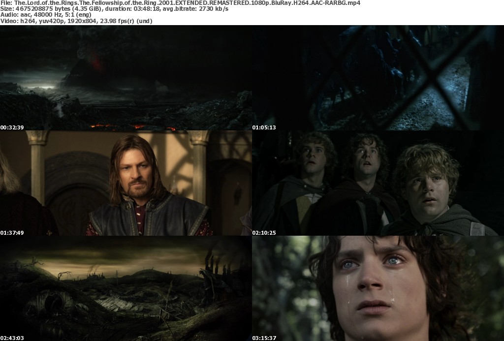 Release Name: The.Lord.Of.The.Rings.The.Fellowship.Of.The.Ring.2001.EXTENDED.REMASTERED.1080p.BluRay.H264.AAC-RBG