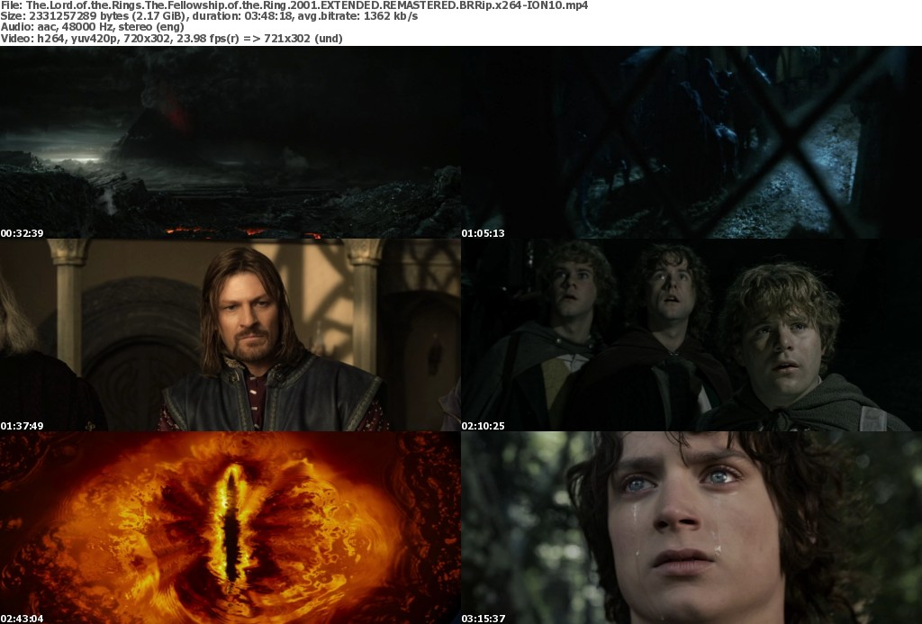 Release Name: The.Lord.Of.The.Rings.The.Fellowship.Of.The.Ring.2001.EXTENDED.REMASTERED.BRRip.x264-ION10