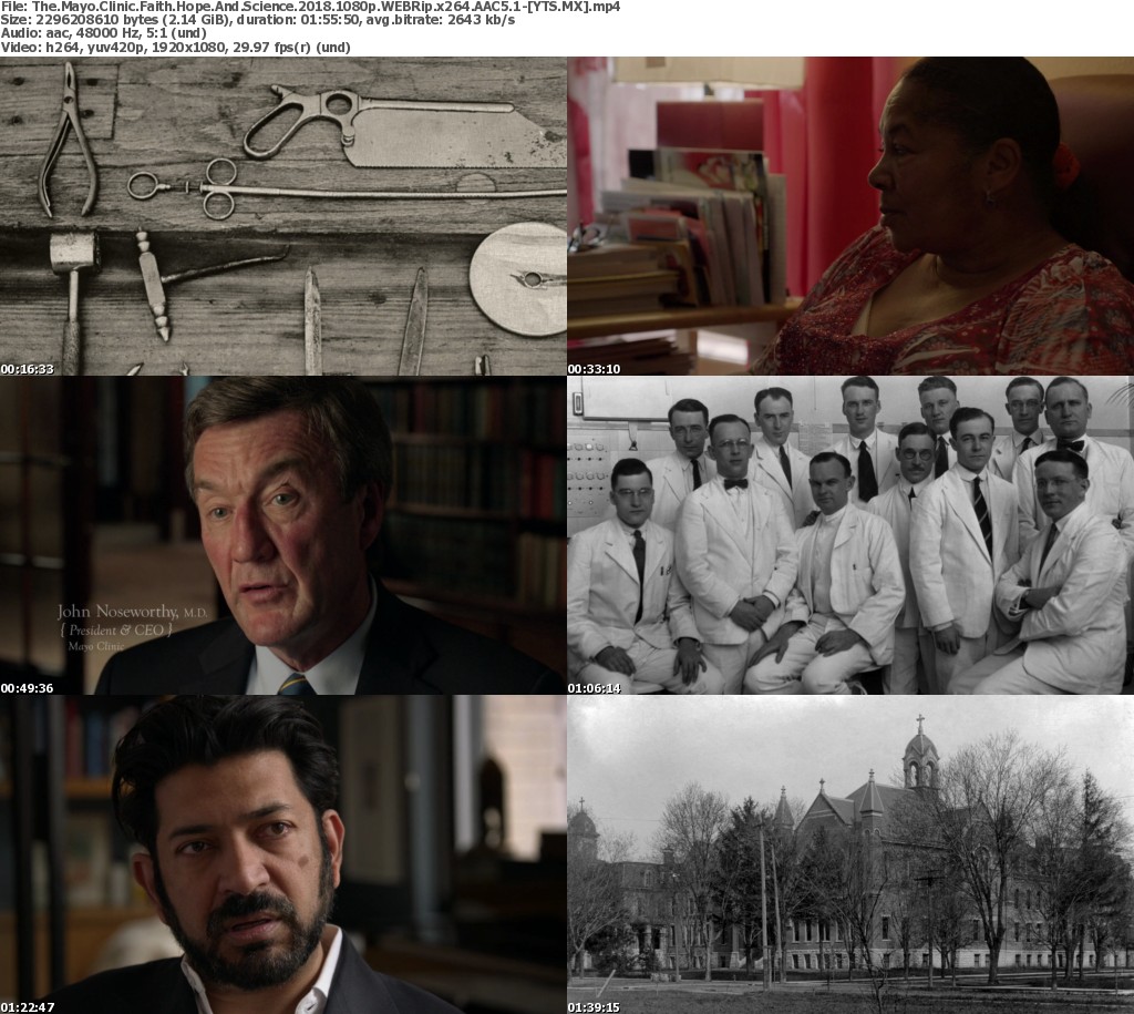 Release Name: The.Mayo.Clinic.Faith.Hope.And.Science.2018.1080p.WEBRip.X265-RBG